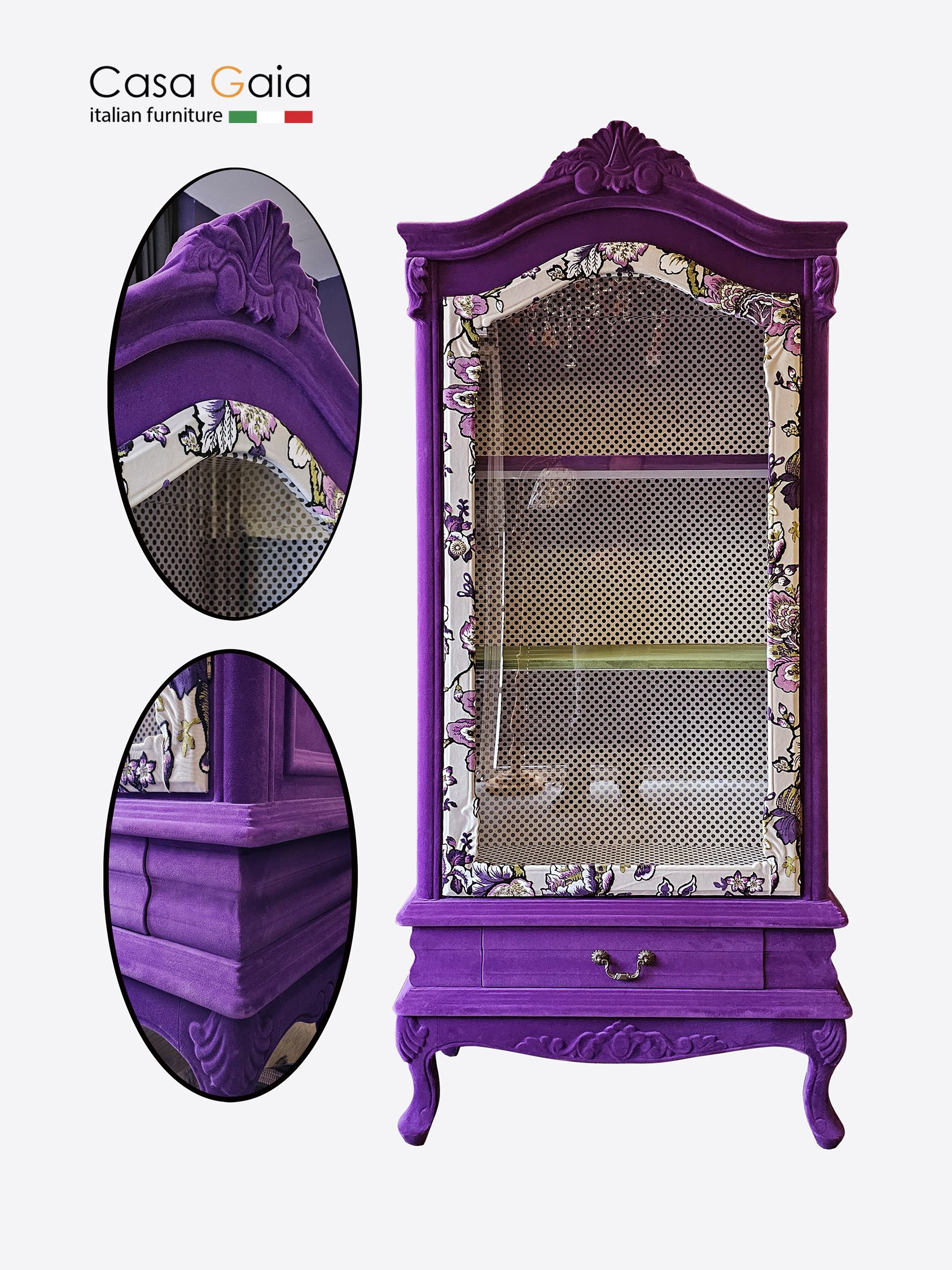 Covered entirely with royal velvet, this unit surely is a focal point