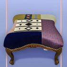 A unique medium-sized solid wood bench stool upholstered with a beautiful combination of velvets and embroideries.